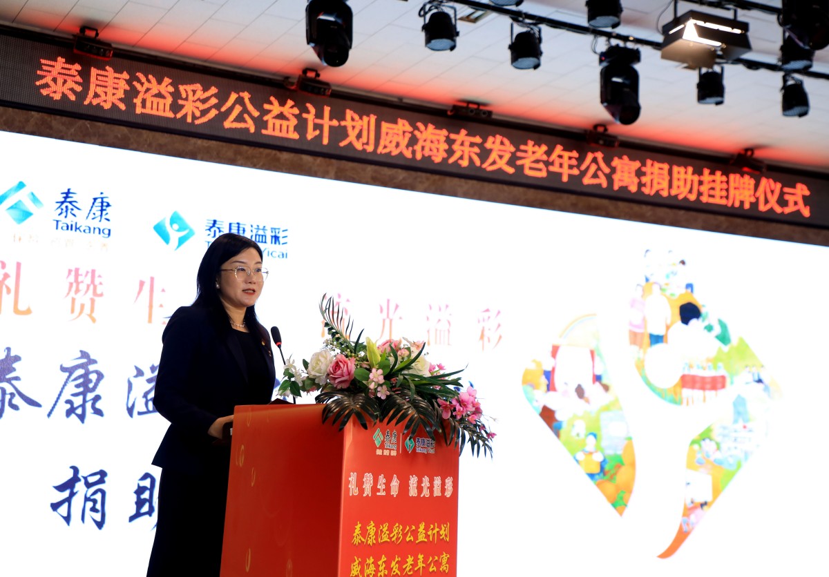此次泰康溢彩公益基金會向威?;鹁娓呒夹g(shù)產(chǎn)業(yè)開發(fā)區(qū)東發(fā)老年公寓捐贈護(hù)理床、電子血壓計、聽診器等適老設(shè)備,支持老年公寓改善條件,并從溢彩培訓(xùn)等方面賦能養(yǎng)老機(jī)構(gòu)發(fā)展,提高養(yǎng)老服務(wù)水平,幫助更多老人享有健康幸福的晚年。