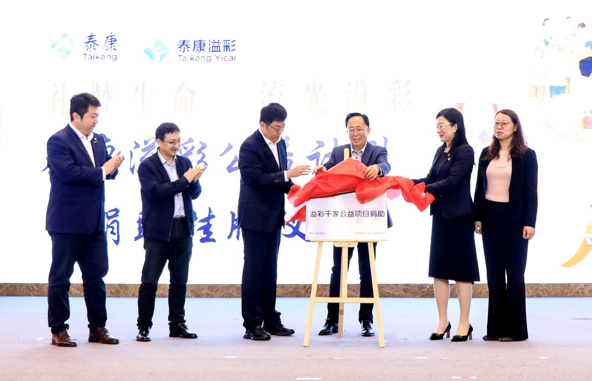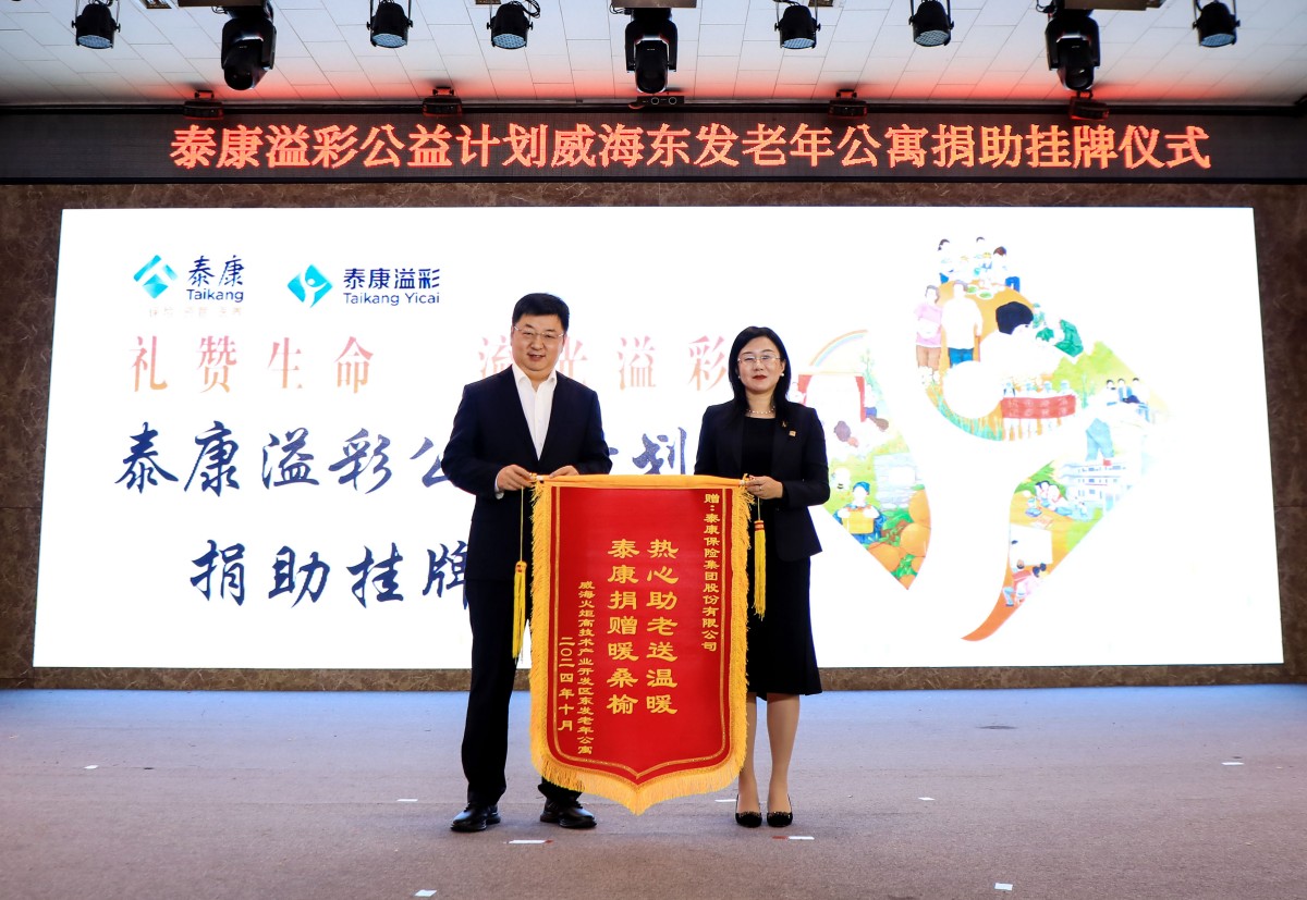 禮贊生命,流光溢彩。在與會人員的共同見證下,泰康“溢彩千家”公益項目正式揭牌!為表達(dá)感謝,東發(fā)老年公寓向泰康贈送錦旗,感謝泰康的愛心捐助。