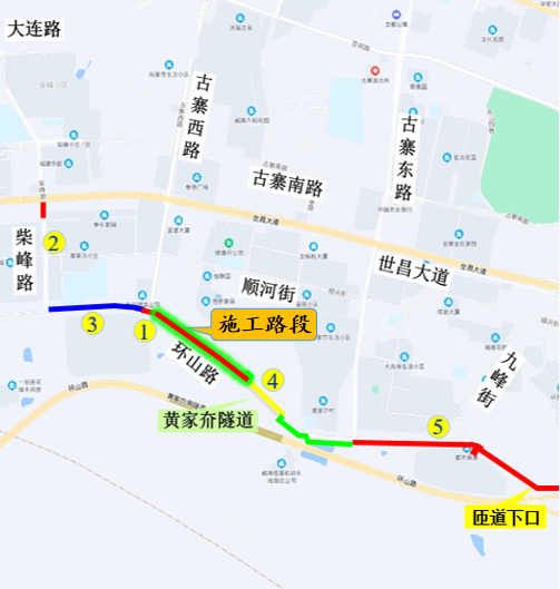 根據(jù)工程總體建設(shè)需要以及總體進度計劃安排,經(jīng)上級部門批準,計劃近期在環(huán)山路(古寨西路至黃家夼隧道西)進行施工,為確保施工期間的交通安全,現(xiàn)公告如下: