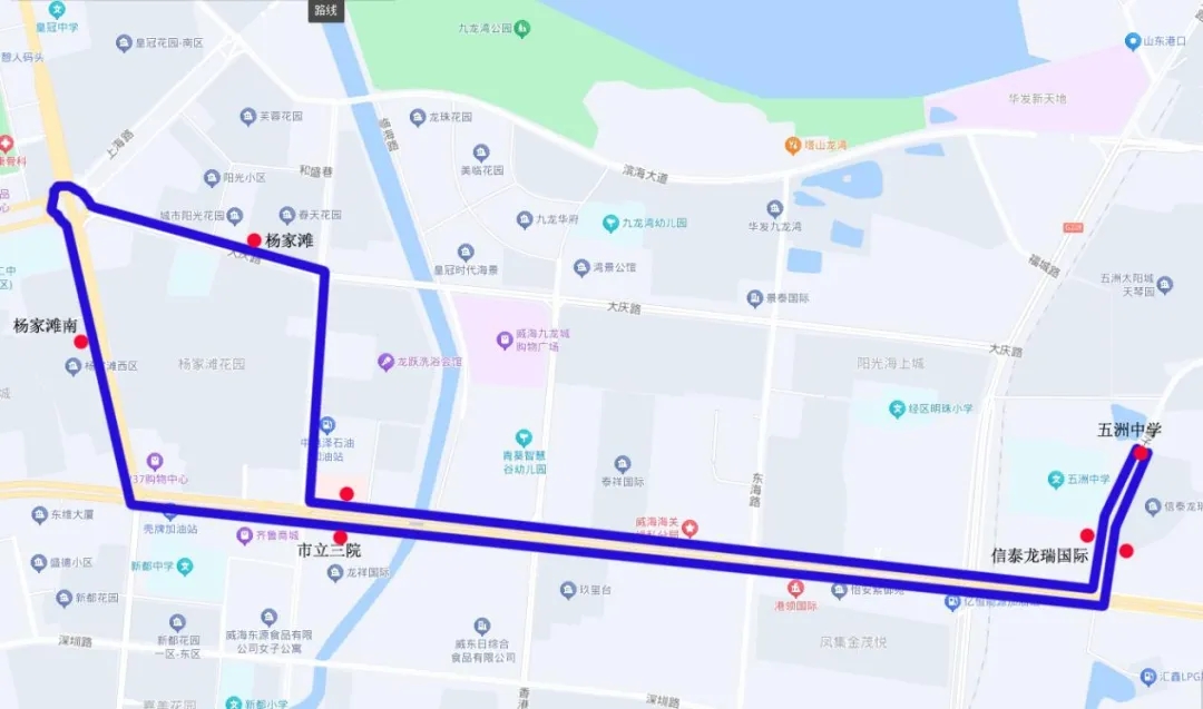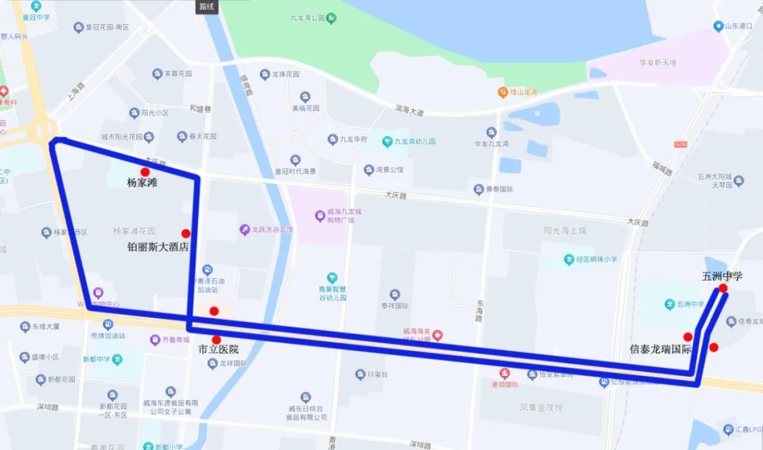 站點(diǎn)設(shè)置:楊家灘、鉑麗斯大酒店、市立三院、信泰龍瑞國際、五洲中學(xué)、信泰龍瑞國際、市立三院、楊家灘。