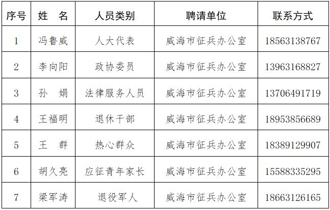 威海市征兵業(yè)務咨詢、監(jiān)督舉報電話