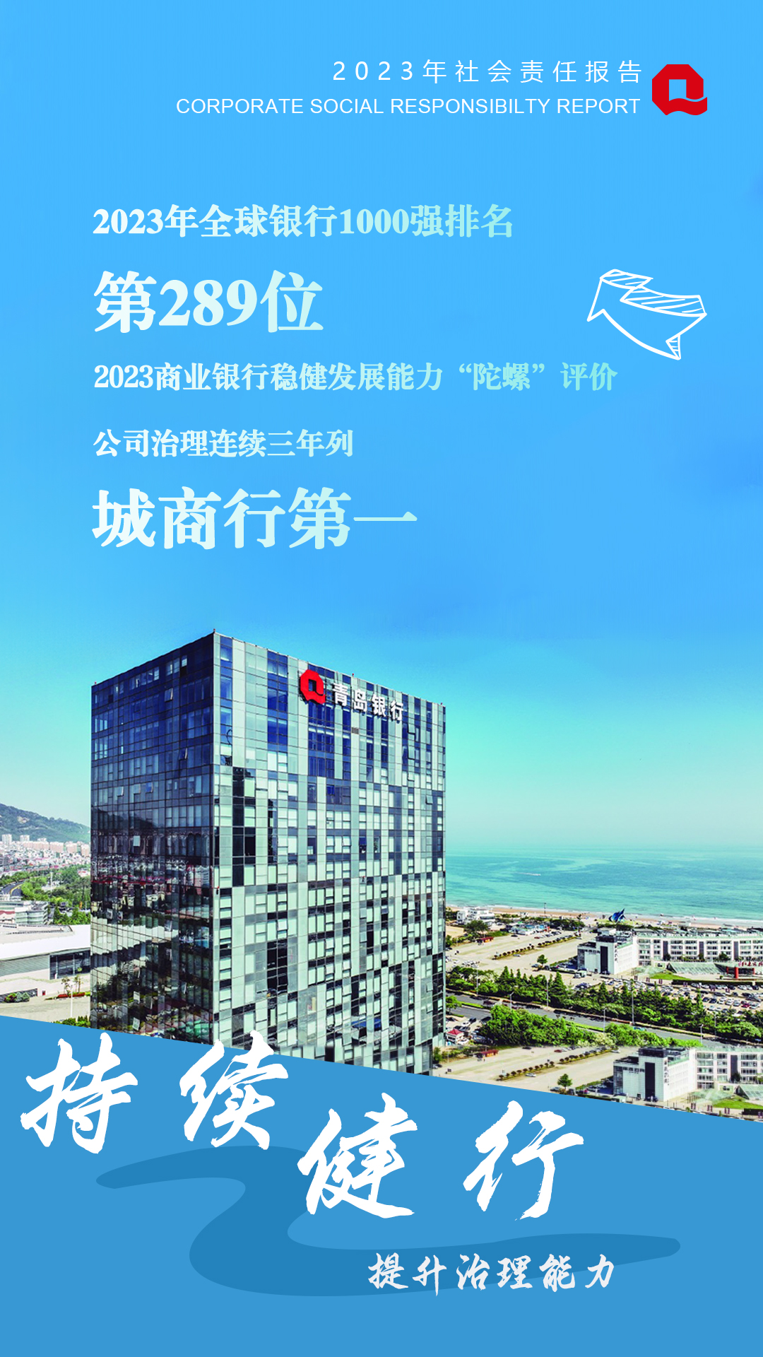 2024年3月28日,青島銀行發(fā)布2023年度社會責(zé)任報(bào)告,這是青島銀行連續(xù)第8年發(fā)布獨(dú)立的社會責(zé)任報(bào)告。2023年,青島銀行堅(jiān)持黨建引領(lǐng)航向,主動將自身發(fā)展融入地方發(fā)展大局,走高質(zhì)量發(fā)展之路,年內(nèi)管理總資產(chǎn)突破8000億元,站上發(fā)展新起點(diǎn)。穩(wěn)健發(fā)展的同時,青島銀行積極履行地方法人銀行的經(jīng)濟(jì)責(zé)任、環(huán)境責(zé)任和社會責(zé)任,以金融助力區(qū)域經(jīng)濟(jì)高質(zhì)量發(fā)展。