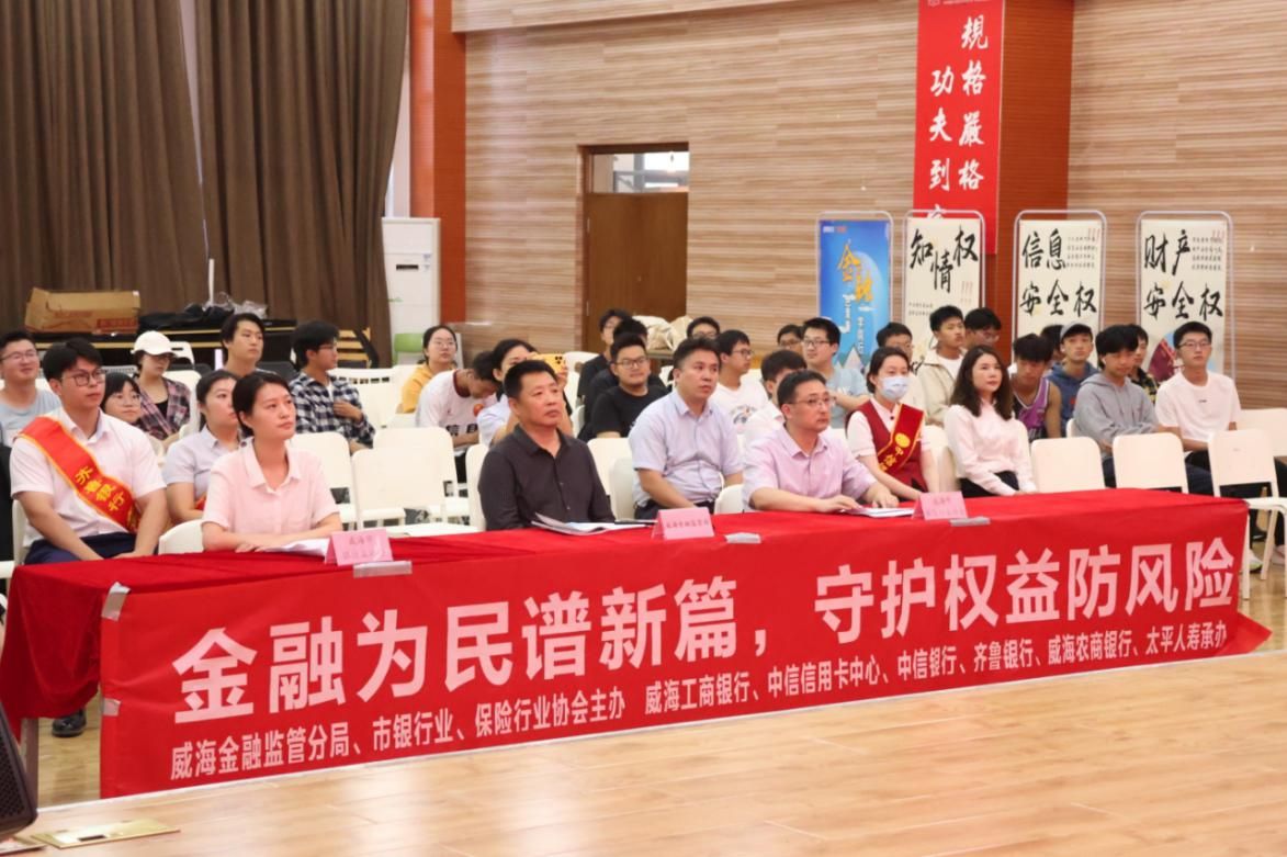 為進(jìn)一步落實(shí)金融教育“五進(jìn)入”,提升大學(xué)生金融素養(yǎng),9月25日,由威海金融監(jiān)管局、威海市銀行業(yè)協(xié)會(huì)、威海市保險(xiǎn)行業(yè)協(xié)會(huì)主辦,工商銀行威海分行、中信銀行威海分行、中信銀行信用卡中心、齊魯銀行威海分行、威海農(nóng)商銀行、太平人壽威海中支等6家金融機(jī)構(gòu)協(xié)辦的“金融為民譜新篇 守護(hù)權(quán)益防風(fēng)險(xiǎn)”2024年“金融教育宣傳月”活動(dòng)走進(jìn)哈爾濱工業(yè)大學(xué)(威海校區(qū)),為在校學(xué)生帶來了一場(chǎng)金融知識(shí)的盛宴。